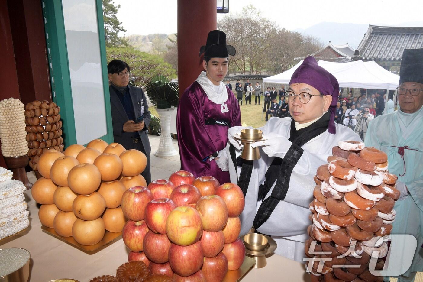 고광완 광주시 행정부시장이 15일 오전 포충사 영당에서 열린 제433주기 충렬공 제봉 고경명 선생 추모제향행사에 참석해 분향과 헌작을 하고 있다.(광주시 제공. 재판매 및 DB 금지)