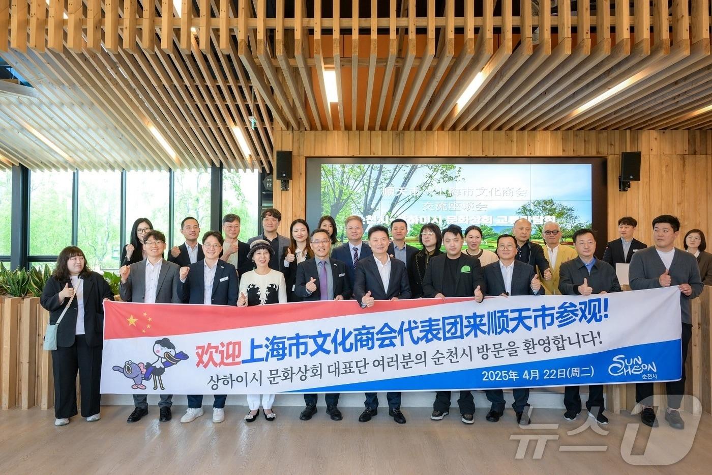 전남 순천시는 22일 순천만국가정원에서 중국 상하이 문화상회 대표단과 문화콘텐츠산업 교류 행사를 진행하고 기념사진을 찍고 있다.(순천시 제공. 재판매 및 DB 금지)