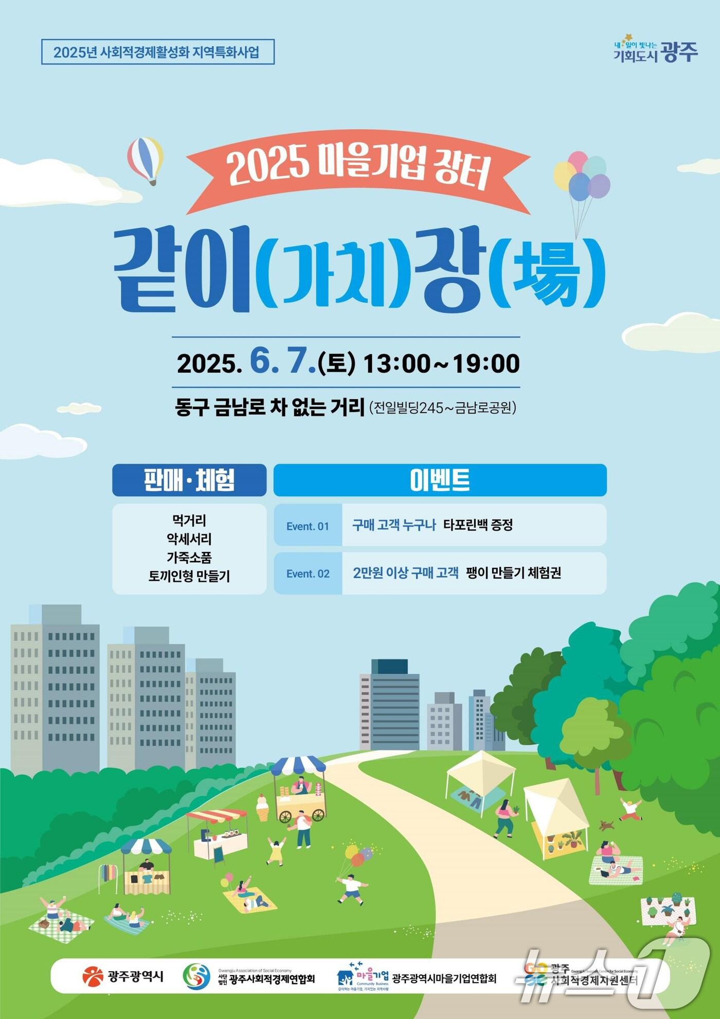 광주사회적경제지원센터…14개 마을기업 우수제품 판매2025 마을기업 장터 '같이(가치 장' 안내.(광주사회적경제지원센터 제공. 재판매 및 DB 금지) 관련 키워드광주 마을 기업 장터같이 장