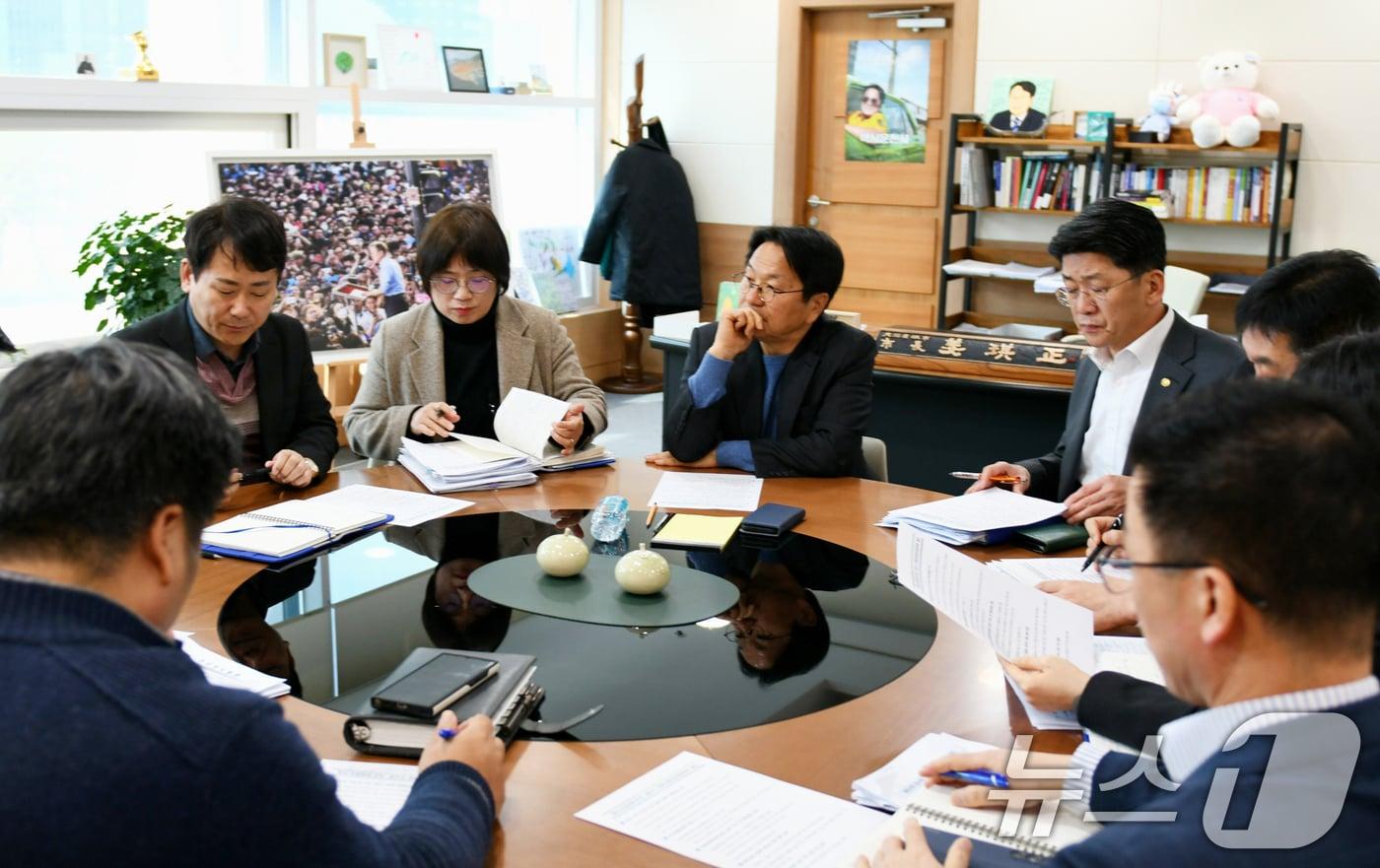 강기정 광주시장이 지난 3월 31일 오전 시장실에서 일일 경제 상황 점검 회의를 갖고 '추경·통상·민생' 등 3대 비상대응 체제 등에 대해 논의하고 있다.(광주시 제공. 재판매 및 DB 금지) 2025.3.31/뉴스1