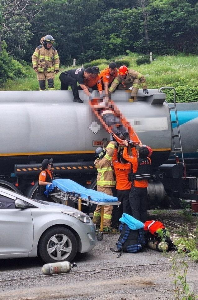20일 오전 11시 50분쯤 전남 여수국가산업단지 인근 도로에 정차된 탱크로리 차량 내부에서 50대 남성이 의식을 잃고 쓰러져 소방당국이 구조 작업을 벌이고 있다.(여수소방서 제공. 재판매 및 DB 금지)관련 키워드여수산단탱크로리차량정비질식사고관련 기사'눈 폭탄'에 뱃길·하늘길 끊기고 교통사고 '속출'…험난한 귀성길(종합2보)"고향 어떻게 가나"…폭설에 하늘길·뱃길 끊기고 사고 속출(종합)