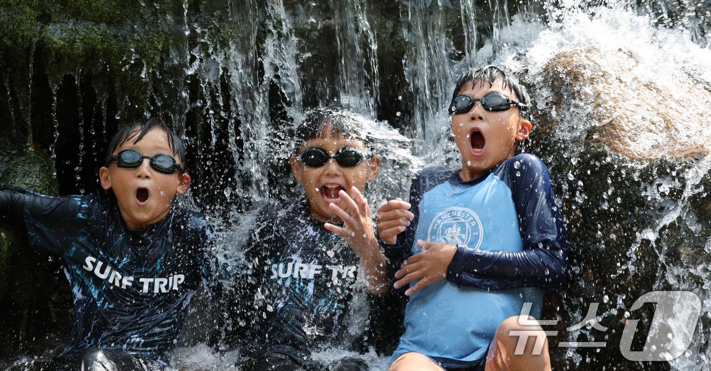 연일 한낮 최고기온이 30도를 넘기며 무더운 날씨가 이어진 가운데 3일 충남 공주 동학사 계곡에서 아이들이 물놀이를 하며 더위를 식히고 있다. 2025.7.3/뉴스1 ⓒ News1 김기태 기자