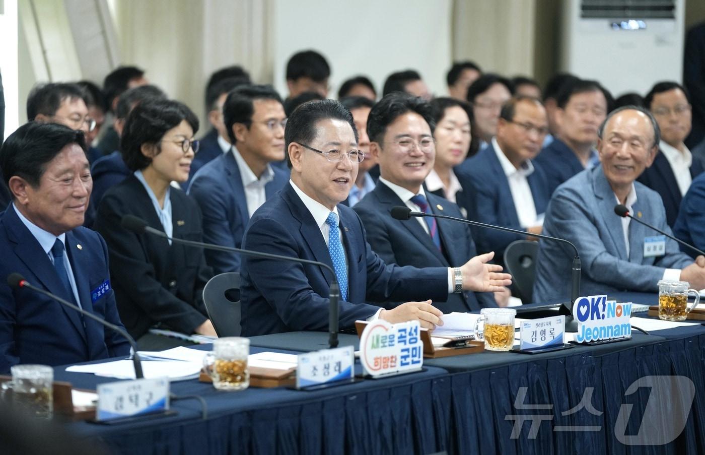김영록 전라남도지사가 8일 곡성군청에서 열린 ‘곡성군 정책비전 투어’행사에 참석해 토론을 주재하고 미래 신산업 육성 등 지역 발전에 대한 의견과 제안에 대한 질문에 답변을 하고 있다.(전남도 제공. 재판매 및 DB금지) 2025.7.8/뉴스1