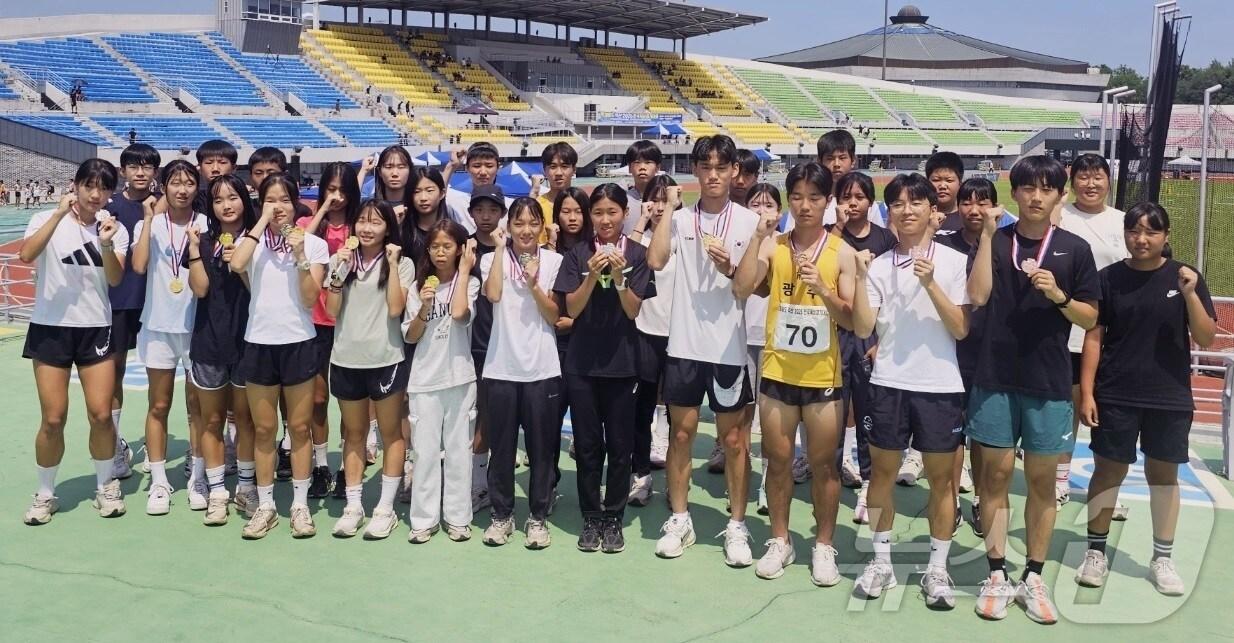 강요한 2관왕 등 메달 9개 획득박수미 감독 "폭염 악조건 속 학생들 열정 자랑스럽다"광주체육중 육상부 학생들이 지난 5일부터 10일까지 전북 익상종합운동장에서 열린 2025 전국육상경기대회에서 금메달 5개, 은메달 1개, 동메달 3개를 따내고 기념사진을 찍고 있다.(광주시교육청 제공. 재배포 및 DB 금지)관련 키워드광주체육중서충섭 기자 이정선 광주교육감, 검찰 기소에 "전형적 정치검찰식 기획 기소"'장성군수 여론조사' 김한종 군수·박노원 '박빙'관련 기사故 박기인 호남대 설립자 겸 명예이사장 영결식 엄수'골리앗 서울' 꺾은 전북·전주…하계올림픽 유치 대한민국 대표로호남대 설립자 박기인 성인학원 명예이사장 별세…향년 92세광주시, '수돗물 품질 향상' 3개 사업 국비 339억 확보검찰, 청렴도 평가 2단계 '뚝' 꼴찌…경찰도 1단계↓ 5등급