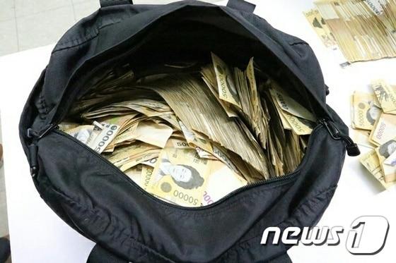 대형마트 입구에 설치된 현금인출기(ATM)에서 거액의 현금을 절취한 피의자들이 경찰에 붙잡혔다. 사진은 경찰이 A씨의 집에서 압수한 현금이 든 가방. (사진제공=용인동부경찰서) ⓒ News1 권혁민 기자