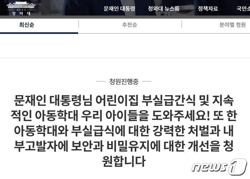 교사 A씨 “강력히 처벌해 달라” 국민청원글 게시원장 C씨 “부적격 교사의 말은 사실 아니다” 반박오산의 한 어린이집 교사 A씨가 청와대 국민청원 게시판에 올린 글 ⓒ News1A씨가 국민청원글에 남긴 곰팡이가 핀 고구마 사진. (A씨 국민청원글 캡처)ⓒ News1이윤희 기자 [오늘의 날씨] 경기(20일, 토)…대체로 흐리고 오전 한때 비경기교육행정포럼, 미래교육 행정 혁신 과제 발표