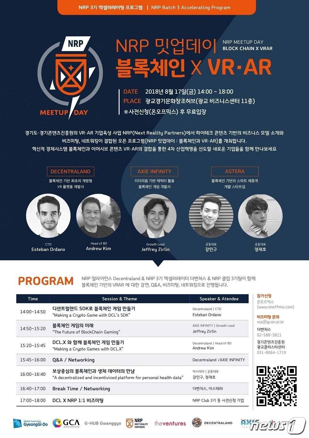 경기도, 17일 광교서 ‘NRP 밋업데이:블록체인과 VR/AR’
