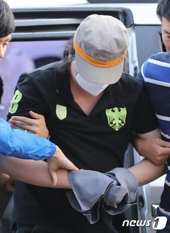 10일 새벽 노래방서 살해·훼손후 저녁에 유기'과천 토막 살인 사건' 용의자 B씨가 21일 오후 경기도 과천시 과천경찰서로 압송되고 있다. 과천경찰서는 피해자 A씨를 살해 후 사체를 유기한 용의자 B씨를 이날 오후 4시께 서해안고속도로 서산휴게소에서 긴급 체포 했다고 밝혔다. ⓒ News1 오장환 기자
