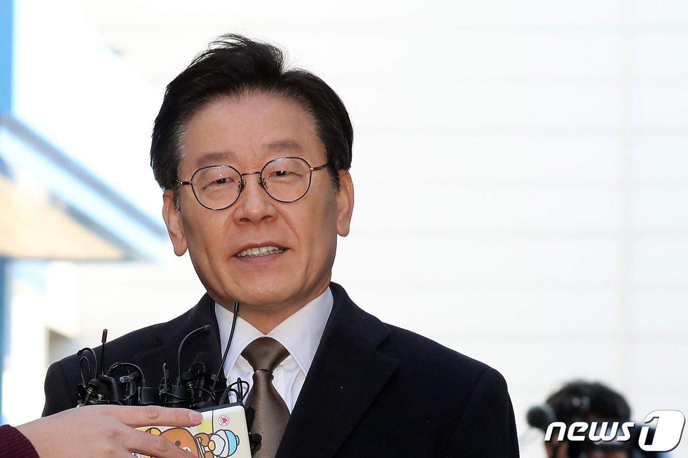 이재명 경기도지사가 14일 오후 경기도 성남시 수원지방법원 성남지원에서 열리는 5차 공판에 출석하던 중 취재진의 질문에 답변하고 있다. 이날 이 지사는 친형(故 이재선씨) 관련 직권남용 혐의 등으로 재판을 받는다. 2019.2.14/뉴스1 ⓒ News1 조태형 기자