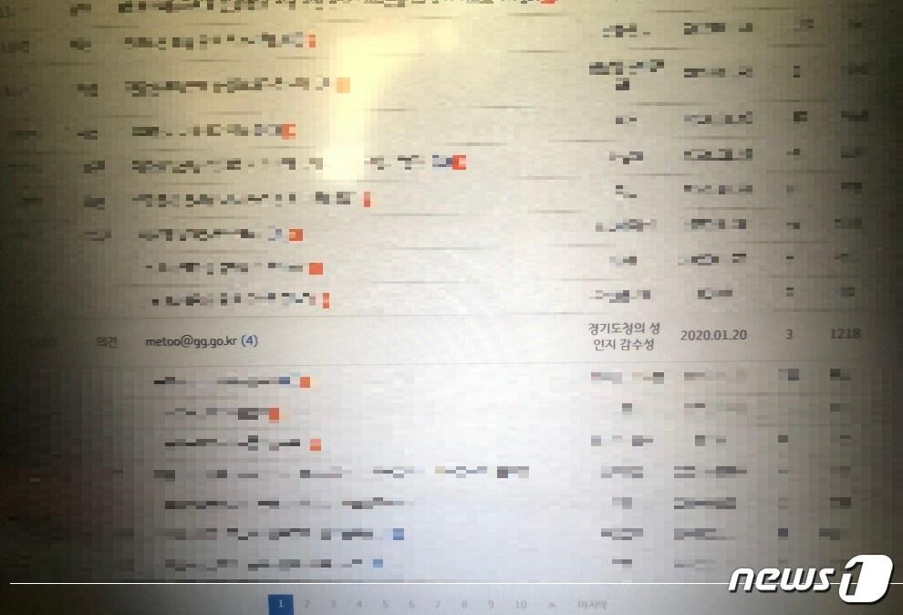 내부게시판에 여직원이 '익명 미투'…"임신순번제 강요" 주장도경기도청 한 공무원에 대한 ‘미투’ 글이 내부게시판에 게시돼 충격을 주고 있다. 사진은 해당 게시글이 올라온 장면./ⓒ 뉴스1송용환 기자 안양예술인센터 입주자 모집…연간 사용료 최저 55만원안양시 '지방규제혁신 성과평가' 전국 유일 3년 연속 최우수