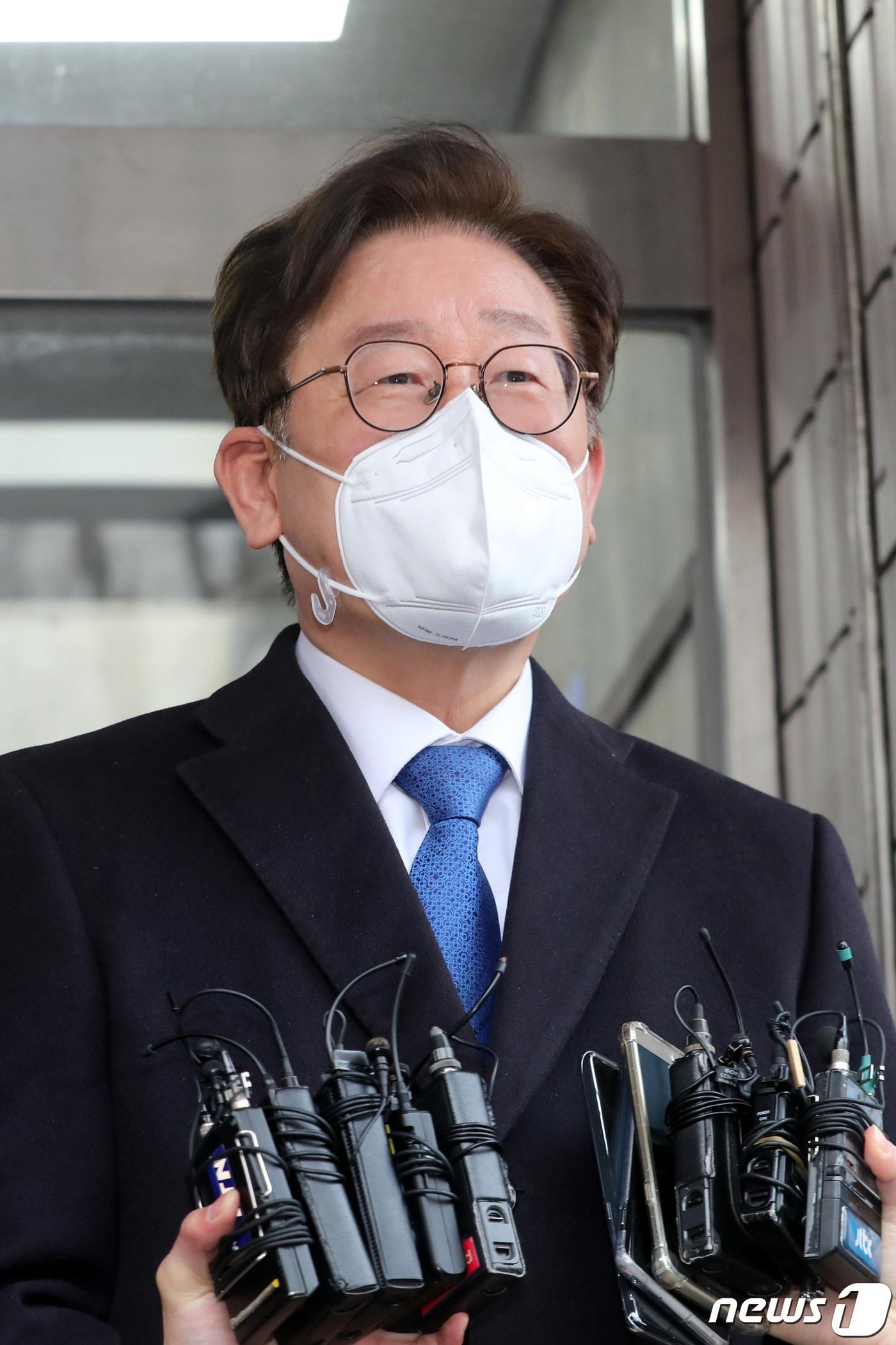 이재명 경기도지사가 25일 오후 경기도 과천시 별양동 소재 신천지예수교회 교육관에서 강제역학조사 현장 방문을 마치고 입장을 밝히고 있다. 경기도는 "신천지 과천교회 신도 가운데 2명이 신종코로나 바이러스 감염증(코로나19) 확진판정을 받았으며 신도명단을 제출하겠다고 했지만 정확한 명단인지 알 수 없어 과천 본사에 대한 강제역학조사에 들어가게 됐다"고 밝혔다. 2020.2.25/뉴스1 ⓒ News1 조태형 기자