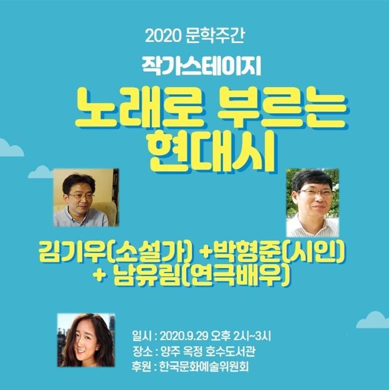 소설가 김기우, 시인 박형준, 연극배우 남유림코로나19로 비대면 공연, 영상으로 만날 수 있어노래로 부르는 현대시 (포스터) ⓒ 뉴스1이상휼 기자 포천시, 행안부 재정분석 개선도 '최우수 지자체' 선정배우 송지효, 의정부교도소 '명예 교도관' 위촉