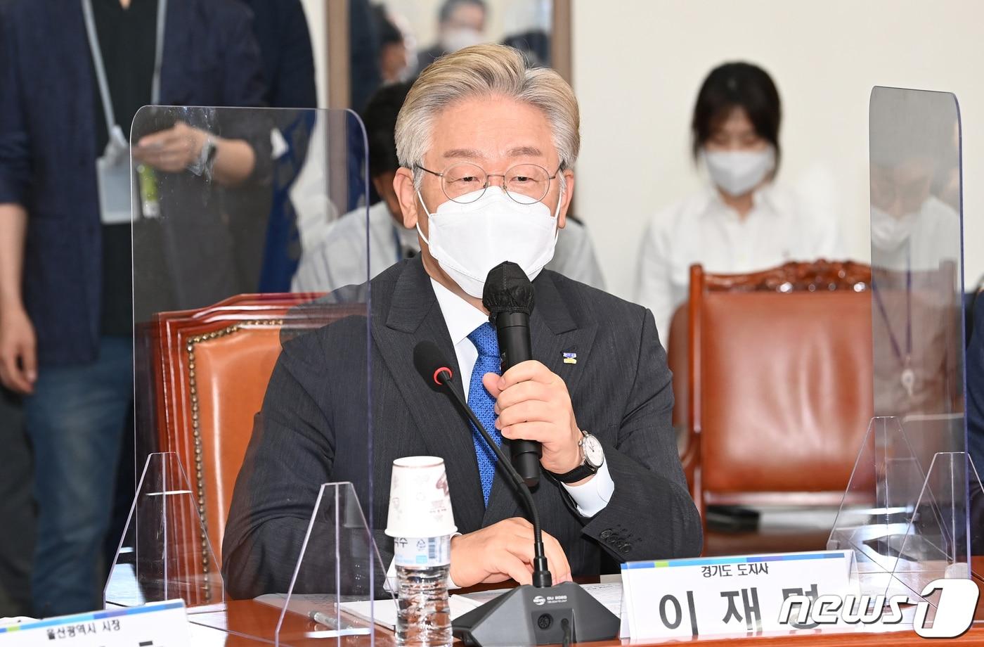 이재명 경기도지사가 10일 오후 서울 여의도 국회에서 열린 더불어민주당 당대표 시도지사 간담회에서 발언하고 있다. 2021.6.10/뉴스1 ⓒ News1 오대일 기자