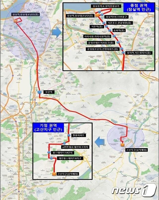 광주 고산지구~잠실역 광역버스 노선도.(대광위 제공) ⓒ News1 김평석 기자 “무대서 하나 되다”…용인 중학교서 펼쳐진 '사제동행' 무대국도 43호선 용인 광교중앙로삼거리~죽전삼거리 스마트교차로 구축