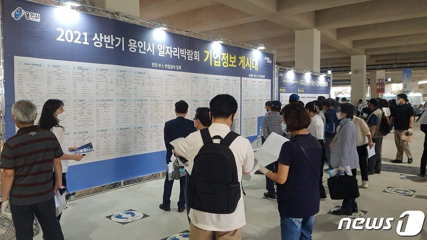 지난해 6월 용인시 삼가동 미르스타디움에서 열린 상반기 일자리박람회에서 구직자들이 구직 정보를 살펴보고 있는 모습.(용인시 제공) ⓒ News1