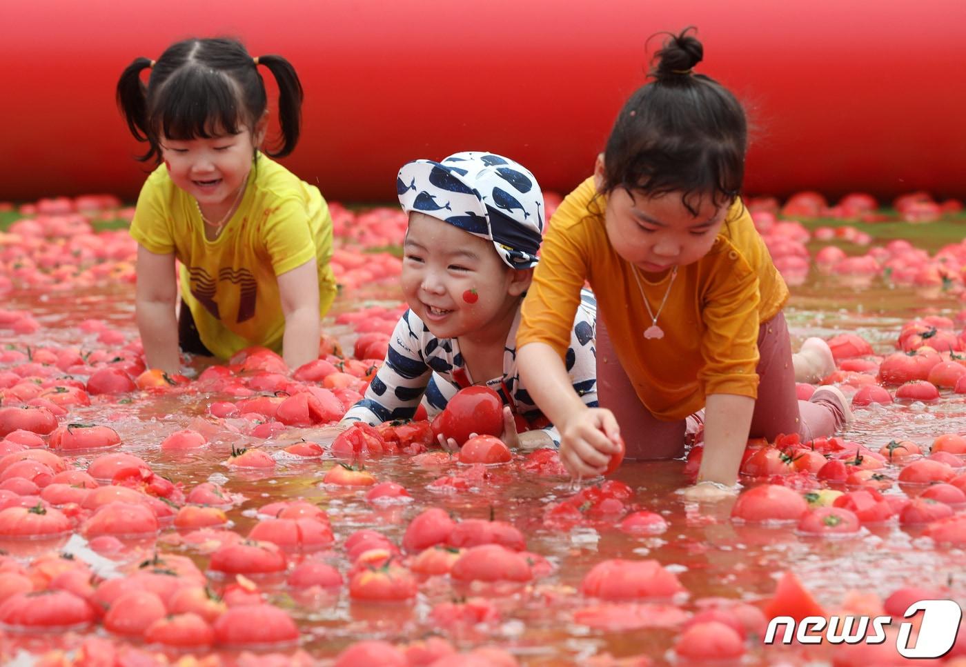 2019년 광주시 퇴촌면 공설운동장에서 열린 제17회 퇴촌 토마토 축제 때 모습. 2019.6.14/뉴스1 ⓒ News1 조태형 기자