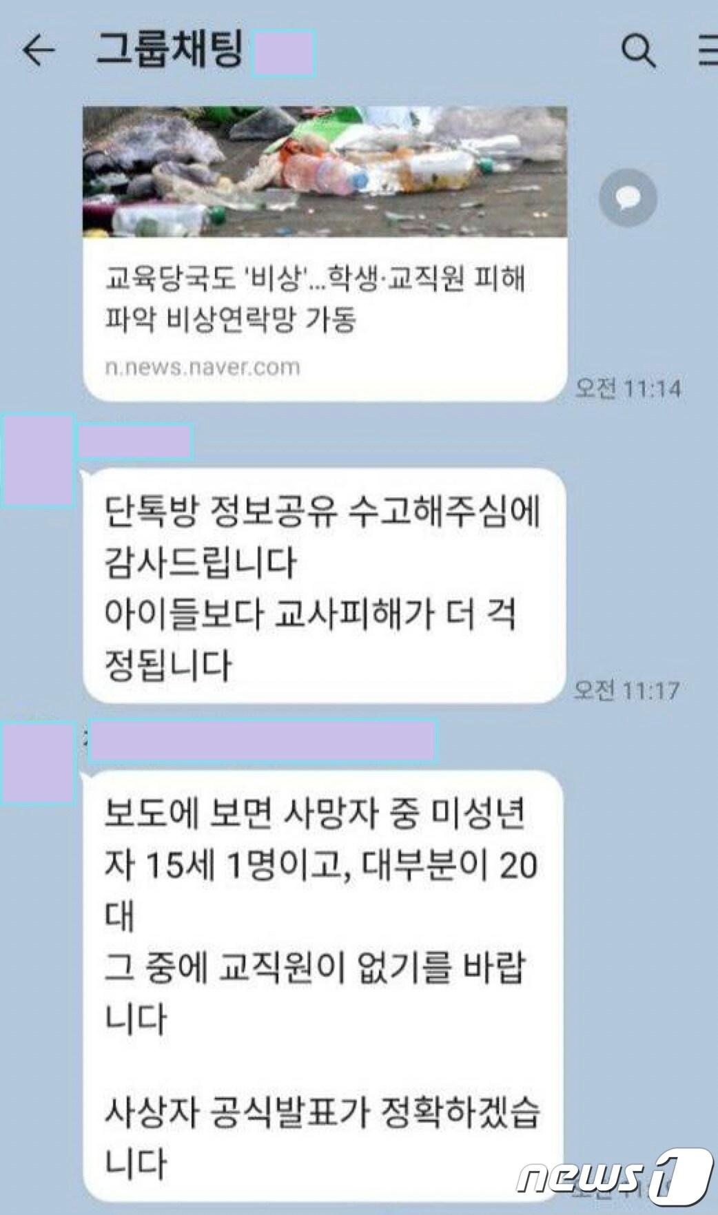 “이런 말 한 사람이 아이들 교육을 책임지는 사람이 맞냐”“오래된 일이라 기억이 잘 나지 않아 …사실 확인해 봐야”지난해 10월 31일 이태원 참사와 관련, 경기도교육청이 단톡방 내용(독자 제공) 이윤희 기자 [오늘의 날씨] 경기(17일, 토)…아침 최저기온 영하 9도안성 공도읍 출몰한 멧돼지 5마리 중 2마리 사살