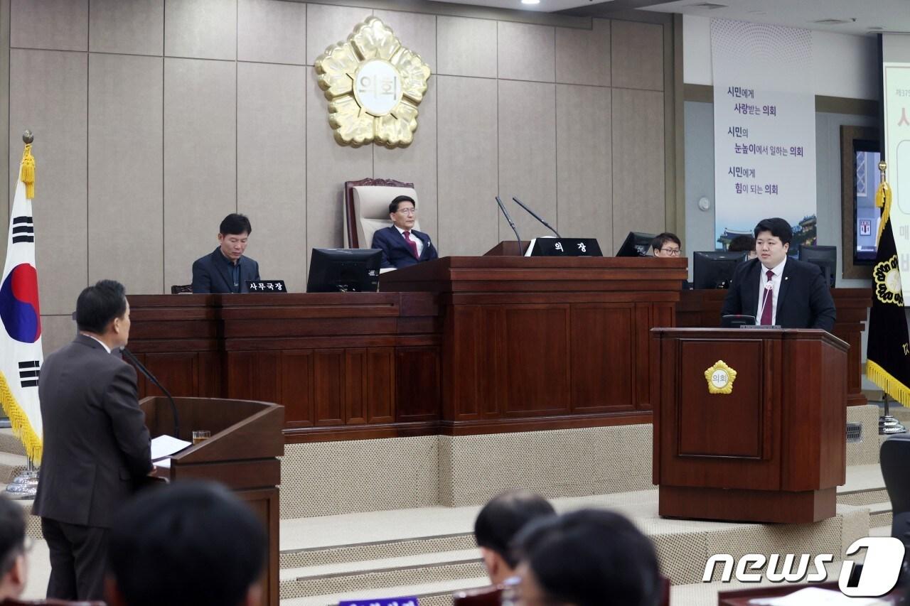 이재준 시장·배지환 시의원 설전…의장 "의원 가르치는 느낌"시정질문 중인 배지환 수원시의원(오른쪽)과, 답변에 나선 이재준 수원시장.(수원시의회 제공)관련 키워드이재준배지환수원시장수원시의원경기남부국제공항최대호 기자 김동연 “산본, 모범적인 1기신도시 선도지구로 만들 것”성인 86.7% 정부 추진 의료개혁 "들어본 적 없어" "잘 몰라"