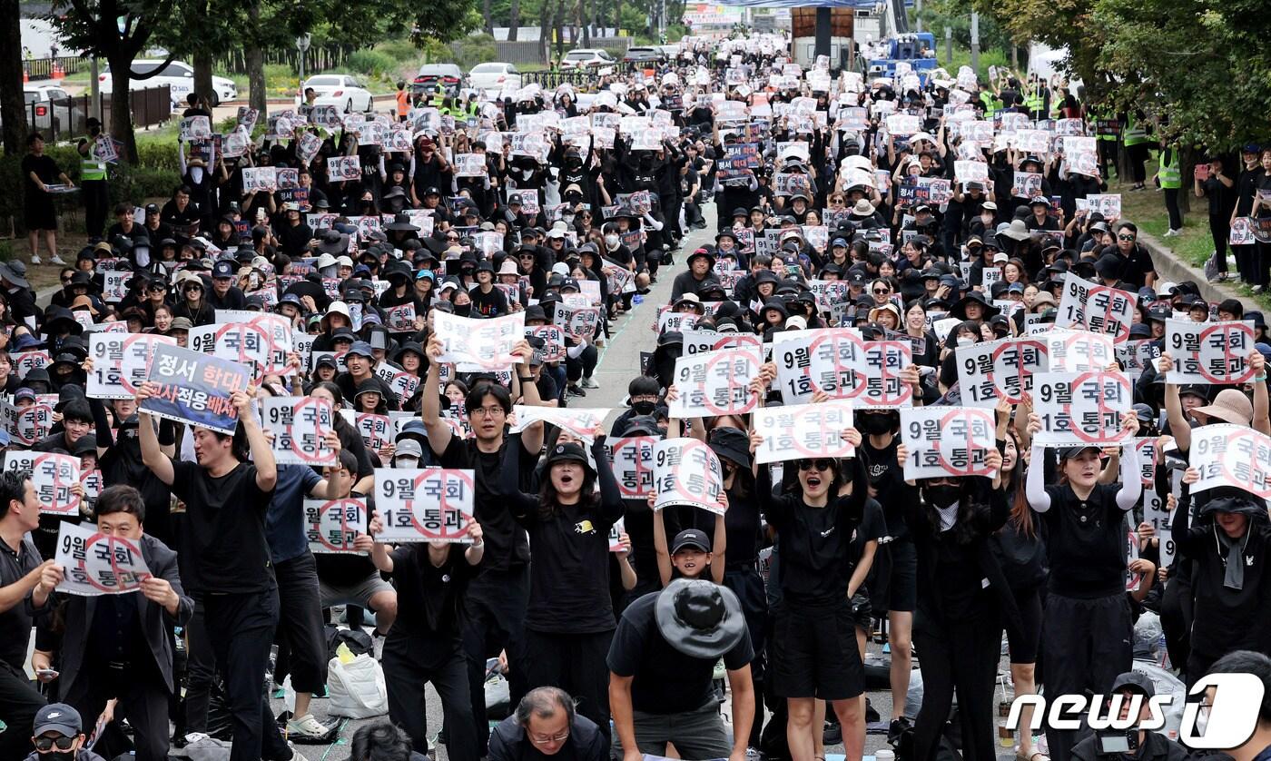 전국 교사들이 16일 오후 서울 여의도 국회의사당 앞에서 열린 '9.16 공교육 회복을 위한 국회 입법 촉구 집회'에서 국회를 향해 교권 회복을 촉구하는 파도타기를 하고 있다. 2023.9.16/뉴스1 ⓒ News1 장수영 기자이윤희 기자 안성 공도읍 출몰한 멧돼지 5마리 중 2마리 사살오산시, 2026년 시정 앞두고 주요 정책·핵심 사업 전반 점검