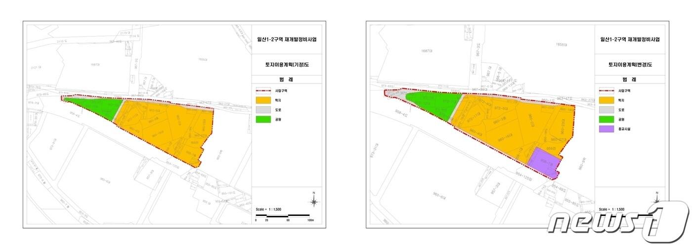 고양 일산1-2구역 재개발 정비계획 변경 전(왼쪽)과 변경 후. (고양시 제공)관련 키워드일산1-2구역주택재개발 정비사업한뫼초교종교시설토지이용계획용적률박대준 기자 이동환 고양시장 “미래 성장 산업 'AI 중심 도시'로 탈바꿈”경기도, '미지급용지' 15개 시군 65필지 2만여㎡ 보상 추진