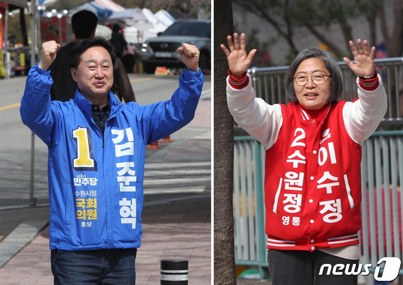 제22대 국회의원 선거 경기 수원정에 출마한 김준혁 더불어민주당 후보(왼쪽부터)와 이수정 국민의힘 후보가 2일 오전 경기 수원시 영통구 일대에서 시민들에게 인사를 하고 있다. 2024.4.2/뉴스1 ⓒ News1 김영운 기자관련 키워드410총선더불어민주당국민의힘이재명한동훈김준혁이수정수원정김기현 기자 "고양이가 가스레인지 건드려 불"…경기 '반려동물 화재' 연 130여건수원시, 노후 소규모 공동주택 주거환경 개선 지원…최대 5천만원관련 기사도전과 응전의 인생사…빈민촌 소년공, 대통령 되다