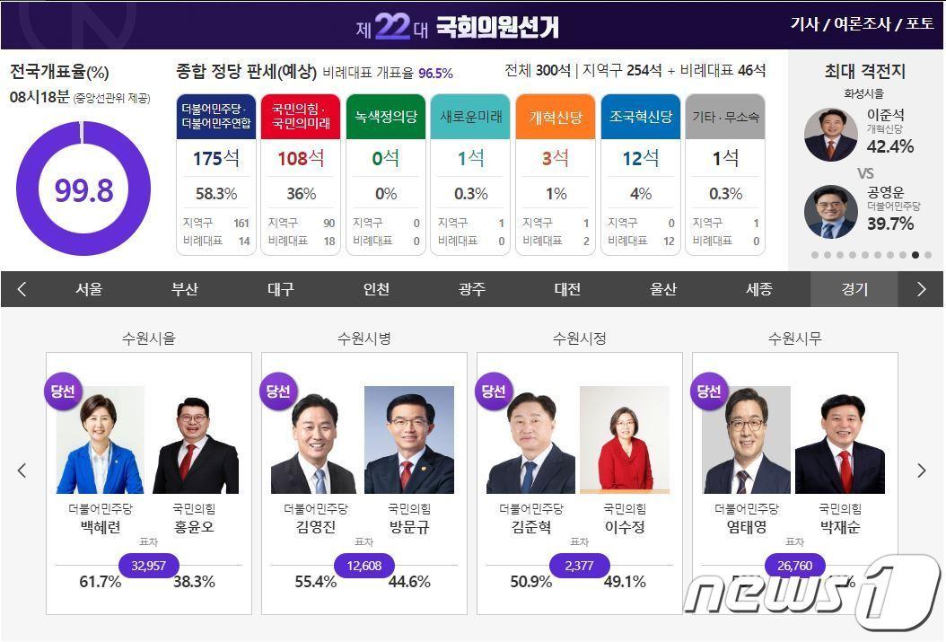 추미애, 하남시갑서 尹대통령 호위무사 이용에 신승…국회의장 유력뉴스1 제22대 국회의원 선거 그래픽 캡처.관련 키워드410총선최대호 기자 경기도, 화성 봉담·구리 토평에 '범죄 안심 디자인' 입힌다'1분이면 신고 끝'…부가세 신고 서비스 '셀프택스' 출시관련 기사이재성, 부산시장 출마선언…"AI 세계 1위 도시 만들겠다"도전과 응전의 인생사…빈민촌 소년공, 대통령 되다