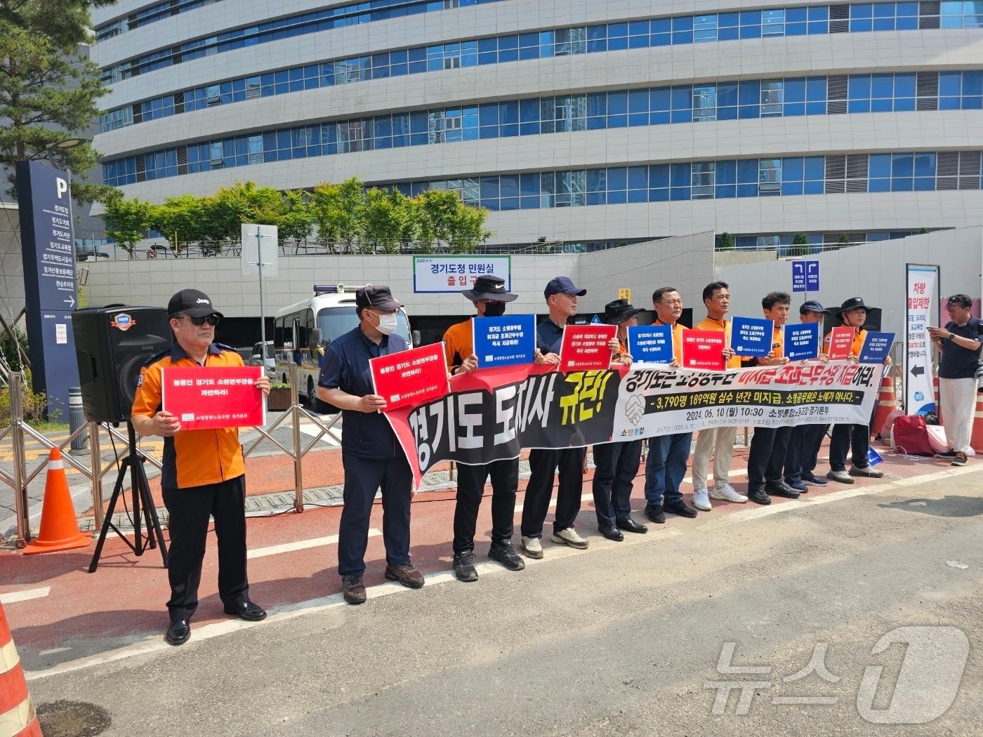 노조 "직업상 24시간 대기 휴게시간도 근무시간 인정" 취지경기도 "청구한 정보공개 대해 공개·비공개 나눠 이미 제공"소방통합공무원노동조합이 11일 오후 2시 경기 수원시 영통구 이의동 소재 경기도청사 일대에서 경기지역 소방 공무원들의 초과근무 수당 지급을 요구하는 기자회견을 가졌다.관련 키워드소방통합공무원노동조합초과근무경기도수당유재규 기자 과천시 '시민 우선채용 사업' 참여기업 모집…고용·교육보조금 지급광명시, 시민 맞춤형 평생학습 '광명지식상점' 전문강사 모집