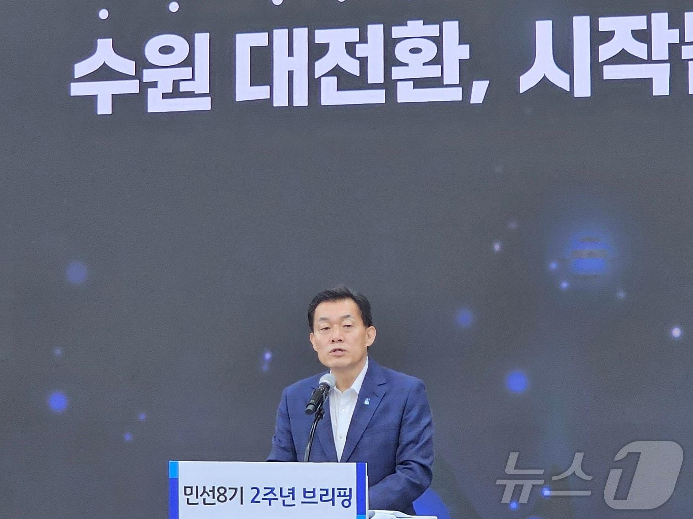 이재준 경기 수원시장이 8일 오전 민선 8기 2주년을 맞아 시청 별관 1층 중회의실에서 언론브리핑을 열고, 발언하고 있다. 2024.7.8/뉴스1 ⓒ News1 김기현 기자