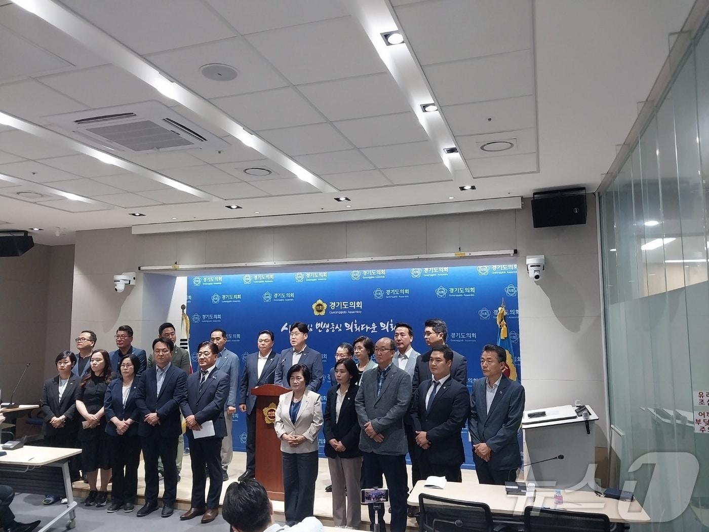 민주 ‘의장’·국힘 ‘위원장 1석 더’ 합의에 상당수 의원 반발경기도의회 정승현·김태형 등 더불어민주당 의원들이 10일 오후 도의회 브리핑룸에서 기자회견을 열어 교섭단체 간 원구성 합의안의 재협상을 촉구했다./뉴스1관련 키워드경기도의회민주당송용환 기자 "천연기념물 '원앙' 보자"…안양천에 탐조객 발길긴 겨울밤, 문장이 불을 켠다…경기도 책방·문학관 산책기관련 기사경기도의회 민주당 '성희롱 논란' 양우식 불신임 조례 추진'성희롱 논란' 위원장 그대로…경기도의회 운영위 사실상 스톱강득구 "李대통령 중심 당청 원팀…친명·친청 없다"…출사표경기도 '청년기본소득' 상임위서 614억 전액 삭감…부활할까김동연·추미애·김병주…'대권 관문' 경기지사 선거 벌써부터 '열기'