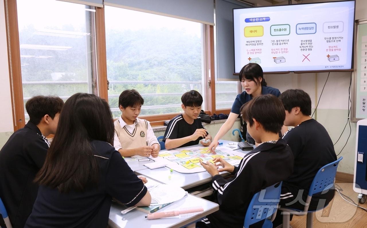 흥덕중학교 1학년 학생들이 단국대 환경교육단 대학생과 함께 환경 교육을 한 뒤 신재생에너지 교구를 활용해 게임을 하고 있다.(단국대 제공)관련 키워드단국대용인시청소년환경교육탄소중립캠페인김평석 기자 이천시, 농업인 희망 농산 가공품 개발…이달 말까지 수요조사경기 광주시 감염병 발생률·임산부 등록률 우수…치매 환자는 미흡관련 기사용인시, 15일 시민 문화축제 '용인! 빛으로 힘차게 나아가리' 개최용인시, 도쿄일렉트론코리아·단국대와 초등생 반도체 캠프용인시-도쿄일렉트론코리아-단국대 '진로교육 활성화' 협약'프로야구 등용문' 한화이글스배 고교vs대학 올스타전 명단 확정용인시와 4개 기관·단체, '민·관·학+탄소중립 프로젝트 실천 협약'
