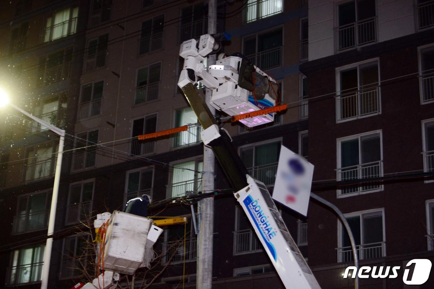 (사진은 기사 내용과 무관함) / 뉴스1 ⓒ News1관련 키워드한국전력의정부정전의정부정전의정부 정전크레인양희문 기자 가평군, 12월까지 청평면 대성리에 54홀 규모 파크골프장 조성이현재 하남시장 "주민들 불편 감내…위례신사선 예타 통과해야"관련 기사간판 떨어져 행인 숨지고 대형 산불까지…전국 곳곳 강풍 피해(종합)강풍에 부러진 나뭇가지 전선 건드려…의정부 853세대 한때 정전