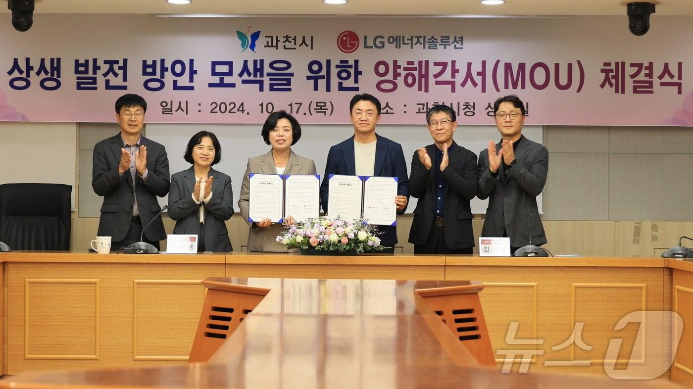 체결식.(과천시 제공)관련 키워드과천시LG에너지솔루션양해각서유재규 기자 안산시-한양대, 미래 첨단 의료산업 '첨단의료복합클러스터' MOU과천시, 보행자 사고예방 '시차제 동시 보행신호' 운영관련 기사신계용 시장, LG에너지솔루션 방문…'과천 연구소 증축' 논의