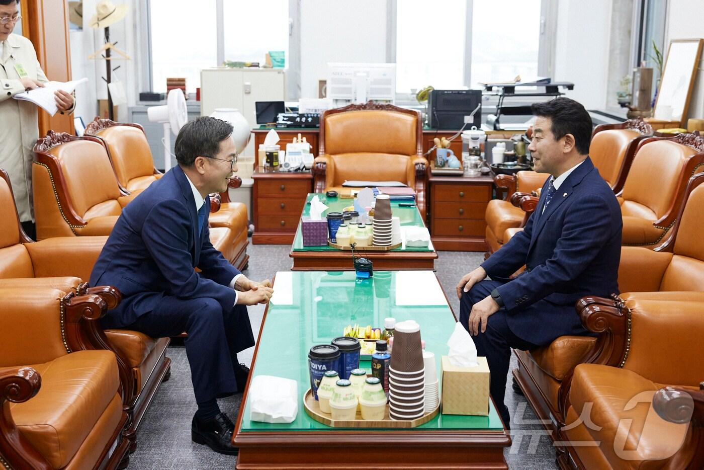 20일 오후 국회 본관에서 김동연 경기도지사(왼쪽)가 ‘2025년 경기도 주요 국비 사업’ 확보 건의를 위해 박정 예결위원장을 면담하고 있다.(경기도 제공)/관련 키워드김동연박정송용환 기자 경기아트센터 '공연장 상주단체 지원사업' 참여 단체 모집안양예술인센터 입주자 모집…연간 사용료 최저 55만원관련 기사김동연, '폭설 피해' 의왕 도깨비시장 찾아 복구 공사·설 물가 점검경기도, 9일 '제2차 경기도 도시철도망' 국회 토론회 개최"李대통령 잘한다" 경기 62% 서울·부산 56%…20대만 40% 내외 '저조'올해 지선은 '격전장'…민주 지지도 앞서나 서울·부산 "野 후보 당선"서울 정원오·부산 전재수 '박빙속 우세'…경기 김동연·추미애 15% 동률