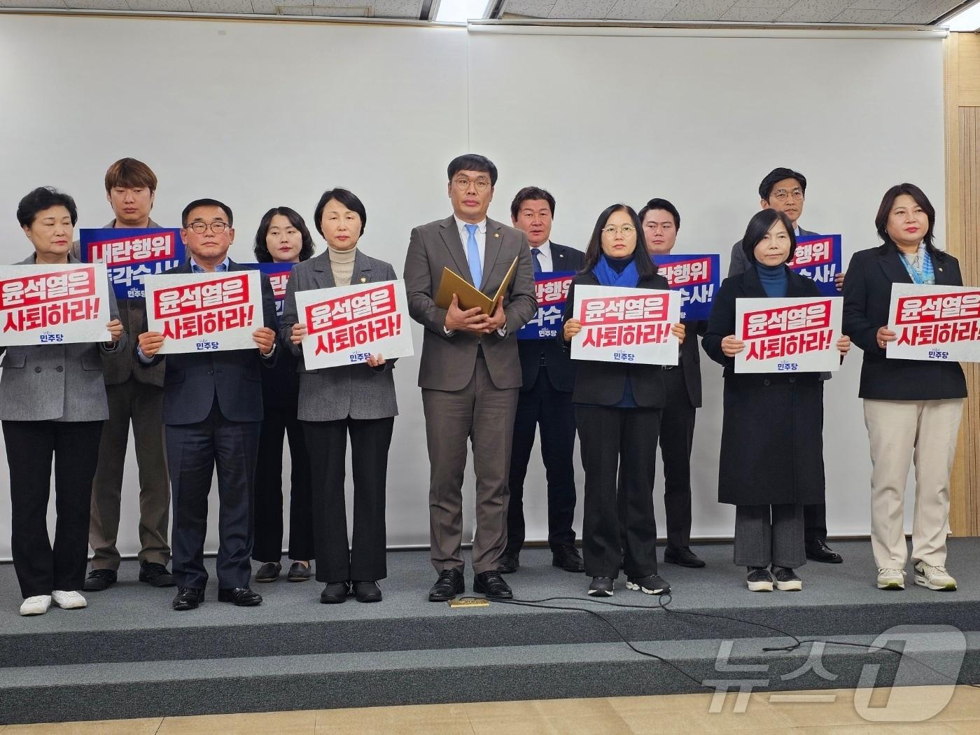 용인시의회 더불어민주당 의원들이 4일 용인시청 브리핑실에서 윤석열 대통령의 즉각적인 사퇴를 촉구하는 성명을 발표하고 있다./김평석 기자관련 키워드용인시의회민주당의원대통령윤석열사퇴성명김평석 기자 이천시, 슬레이트 170개동 철거·지붕개량 지원…철거 최대 700만원경기 광주시, 4대강 수계관리기금 주민지원사업 우수 '장관 표창'관련 기사용인시의회, '동료 의원 성희롱 징계' 의원 부의장직 박탈"尹 즉각 파면" vs "각하"…용인시의회도 '두쪽'