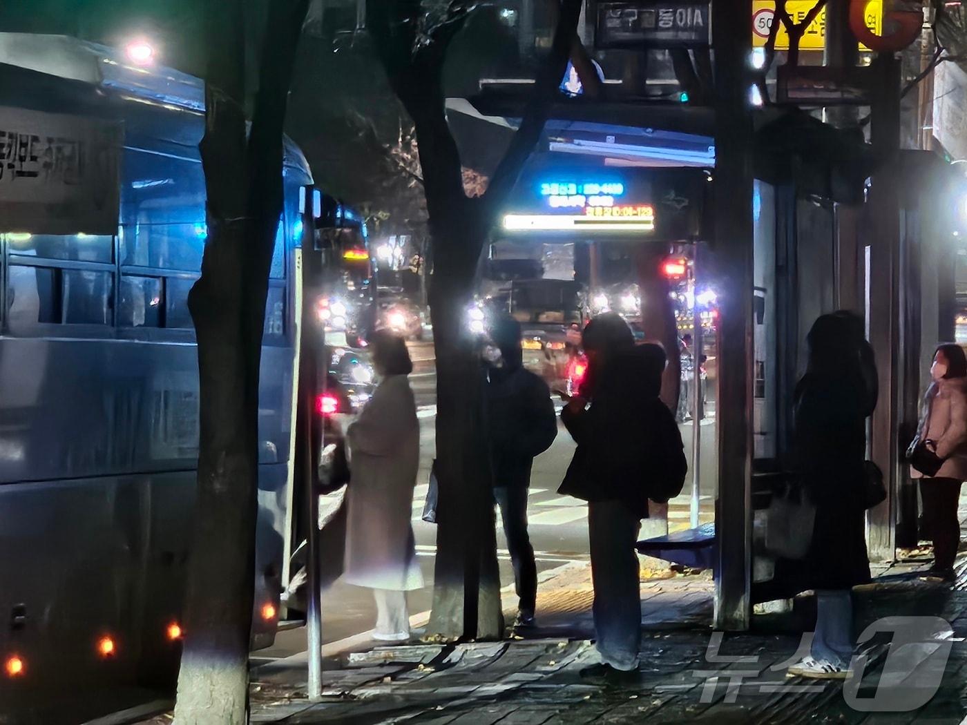 전국철도노동조합(이하 철도노조)이 총파업에 돌입한 5일 오전 경기 수원시 영통구 영통동 한 버스정류장에서 시민들이 광역버스를 기다리고 있다. 2024.12.5/뉴스1 ⓒ News1 김기현 기자