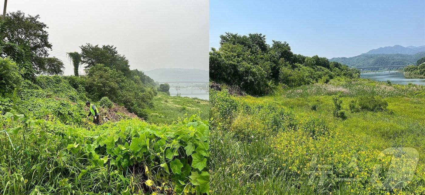 가시박 등 교란식물 72톤, 큰입배스 알·치어·성체 9.4톤 제거한강청이 올해 5~10월 양평군 앙덕리 일대에서 진행한 생태계 교란 식물 제거 작업 전(왼쪽)후(오른쪽) 모습.(한강청 제공)관련 키워드한강유역환경생태계보호균형교란생물김평석 기자 이천시, 농업인 희망 농산 가공품 개발…이달 말까지 수요조사경기 광주시 감염병 발생률·임산부 등록률 우수…치매 환자는 미흡관련 기사화성시, 지방규제혁신 우수 지자체…특교세 1억 확보"수도권 기후적응 선도" 이승환 신임 한강유역환경청장 취임광주시, 경안B1·한강 F6·F7·F8 개발 부하량 완화…40→50% 소진[인사] 기후에너지환경부안양시 '한강수계관리기금사업 성과평가' 3회 연속 최우수