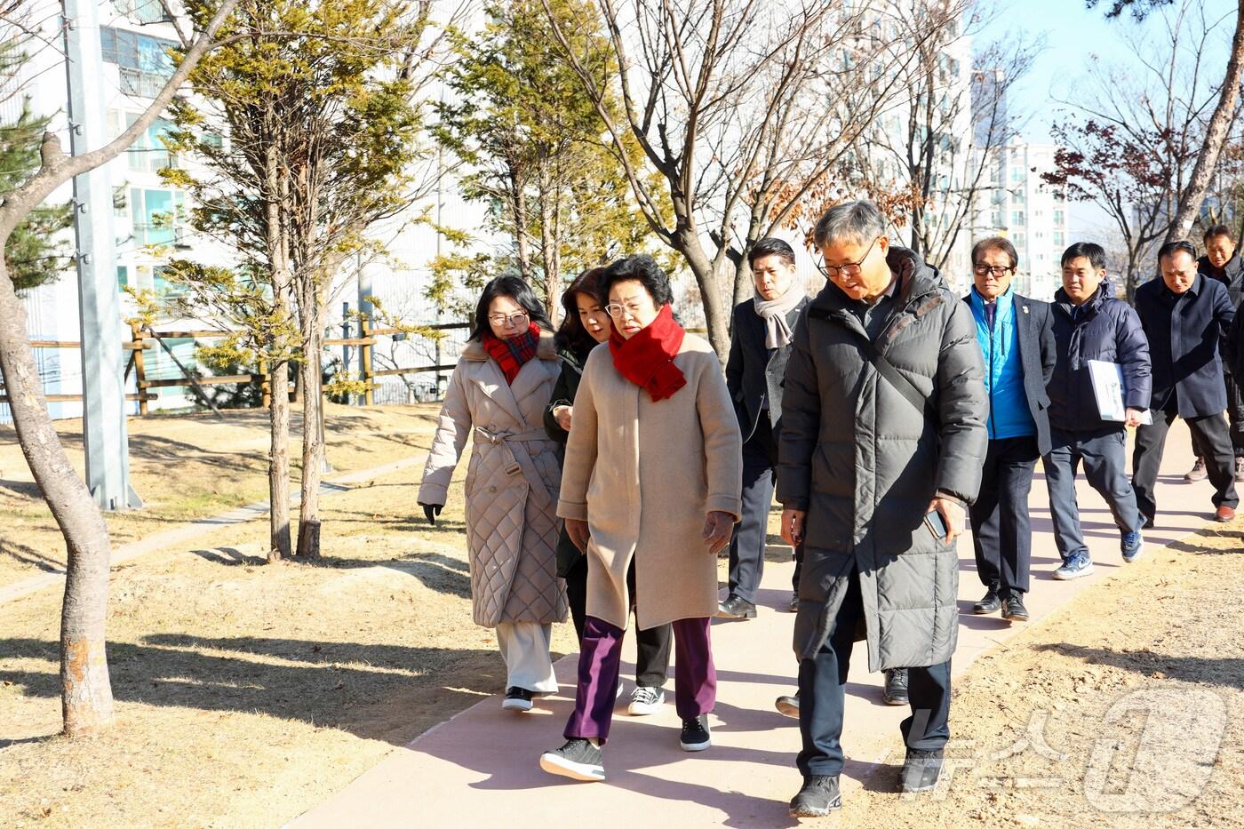 김경희 이천시장(가운데)이 18일 열린 온천공원 무장애 나눔 길 기념행사에서 참석자들과 함께 산책로를 걸으며 시설을 확인하고 있다.(이천시 제공)관련 키워드이천시온천공원무장애나눔길조성공사김평석 기자 이천시, 2025년 경기도 누구나 돌봄 사업 최우수상 수상용인시, 2년 연속 지방규제혁신 성과평가 '우수 지자체' 선정관련 기사이천시, 온천공원에 산림복지 도시 숲 조성…녹색자금 공모 선정이천시 마장근린·부악근린·온천공원 물놀이시설 15일 개장이천시 동요센터 건축설계 공모작 선정…하반기 착공