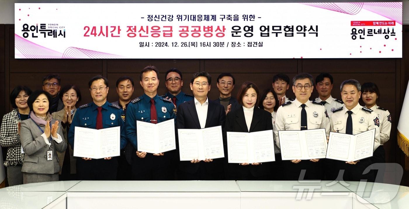 경찰·소방·의료기관과 협약…내년 1월1일부터 공공병상 운영용인시가 26일 용인정신병원, 용인동·서부경찰서, 용인·용인서부소방서와 '24시간 정신응급 공공병상 운영'을 위한 협약을 체결했다.(용인시 제공)관련 키워드용인시소방서경찰서정신응급공공병상운영김평석 기자 이천시, 농업인 희망 농산 가공품 개발…이달 말까지 수요조사경기 광주시 감염병 발생률·임산부 등록률 우수…치매 환자는 미흡관련 기사대도시 안전 정책 시스템 으로 주목받는 '용인시 안전문화살롱'용인시, 경찰·소방 등과 '재난대응 지휘차량' 활용 논의'4명 사상' 용인 흥덕IT밸리 화재…발화원은 '냉동고 개조 승합차''4명 사상' 용인 흥덕IT 밸리 화재 현장 합동감식…발화 원인 규명 주력'펑' 소리와 함께 화염 솟구쳐…용인 40층 건물 화재로 4명 사상(종합)