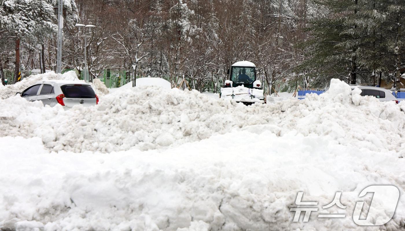 강원 산간과 동해안을 중심으로 대설특보가 발효된 4일 강원 강릉시 성산초등학교 아이들이 폭설 속 하교하고 있다. 기상청은 오는 5일까지 강원 산지에 최대 40cm 이상, 강원 동해안에 30cm 이상의 폭설이 더 쏟아질 전망이라고 예보했다. 2025.3.4/뉴스1 ⓒ News1 윤왕근 기자