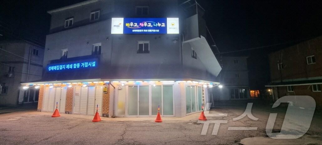 성매수 행위 감시, 반 성매매 교육 역할이달부터 본격 운영에 들어간 파주시 연풍리 성매매집결지 폐쇄를 위한 거점시설. (파주시 제공, 재판매 및 DB금지)관련 키워드파주성매매집결지연풍리용주골김경일박대준 기자 명재성 경기도의원 "부실로 멈춰 선 서해선 즉각 정상화해야"파주 운정신도시 주민들, LH에 21개 지역 현안 해결 촉구관련 기사파주 성매매집결지, 주간에도 경찰 배치…성 매수자 유입 차단파주시, '연풍리 성매매집결지' 복합 복지·문화공간으로 탈바꿈 추진파주시, 성매매피해자 자활지원센터 개소…피해자 사회복귀 지원'70년 불법 성매매 온상' 용주골서 열린 양성평등주간 기념행사파주시 성매매집결지 내 불법건축물 82개 중 77개 정비 완료