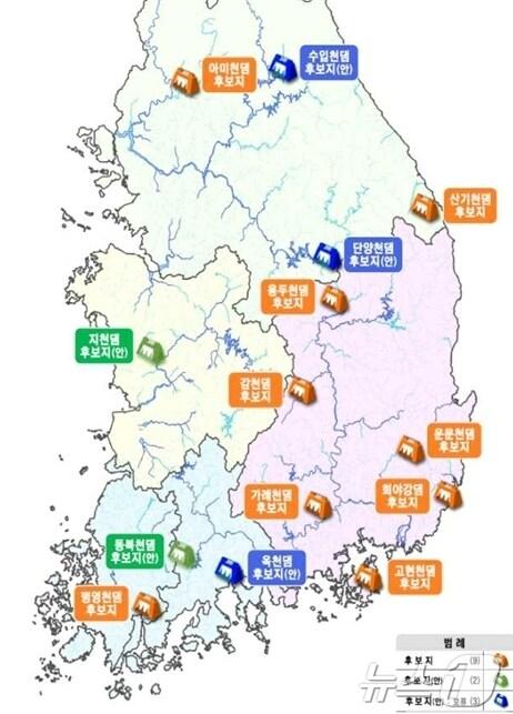 기후대응댐 14곳 위치도. (환경부 제공, 재판매 및 DB금지)관련 키워드아미천댐기후대응댐환경부다목적댐김성원 의원박대준 기자 이동환 고양시장 “미래 성장 산업 'AI 중심 도시'로 탈바꿈”경기도, '미지급용지' 15개 시군 65필지 2만여㎡ 보상 추진관련 기사尹정부 추진 14개 기후댐 절반 백지화…사업비 4.7조→2조 축소연천 아미천 상류 '무단점유 불법영업' 단속 개방…시민 품으로하천 무허가 '봉이 김선달' 영업 여전…관할 당국은 '모르쇠' 반복인용시 기후댐·NDC·원전 제동…기후정책 향방도 헌재 손에 [尹탄핵심판]수도권 새 기후댐 후보지, 연천군청서 3㎞…용두천댐은 상류에