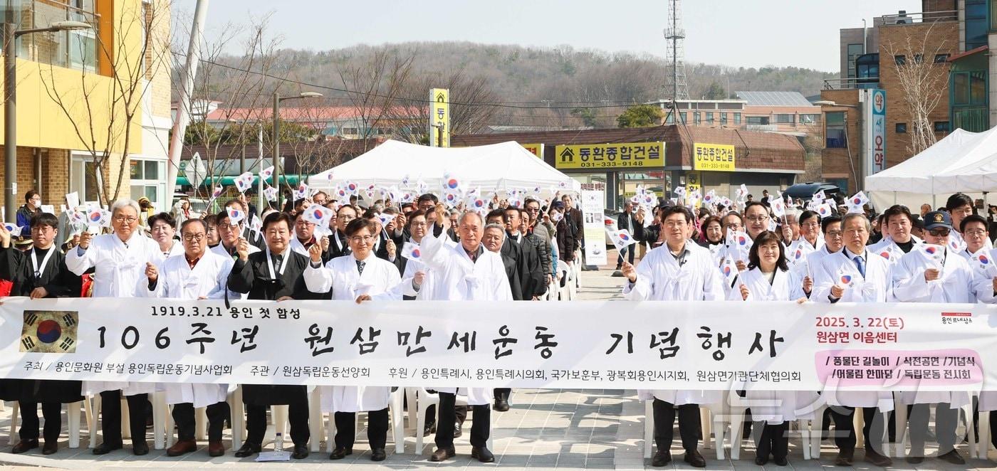 이상일 시장 “다시는 나라 침탈당하지 않도록 대비하자”지난 22일 용인시 처인구 원삼면 이음센터 야외무대에서 열린 용인 3·21 만세운동 기념행사 때 모습.(용인시 제공)관련 키워드용인시만세함성운동기념행사재현무대김평석 기자 용인시, 노후주택 에너지 효율 개선비 50%범위·최대 1천만원 지원용인시청소년수련원 썰매장 개장…용인시민 40% 할인관련 기사용인 수지·기흥서 106년 전 독립 만세 운동 재현