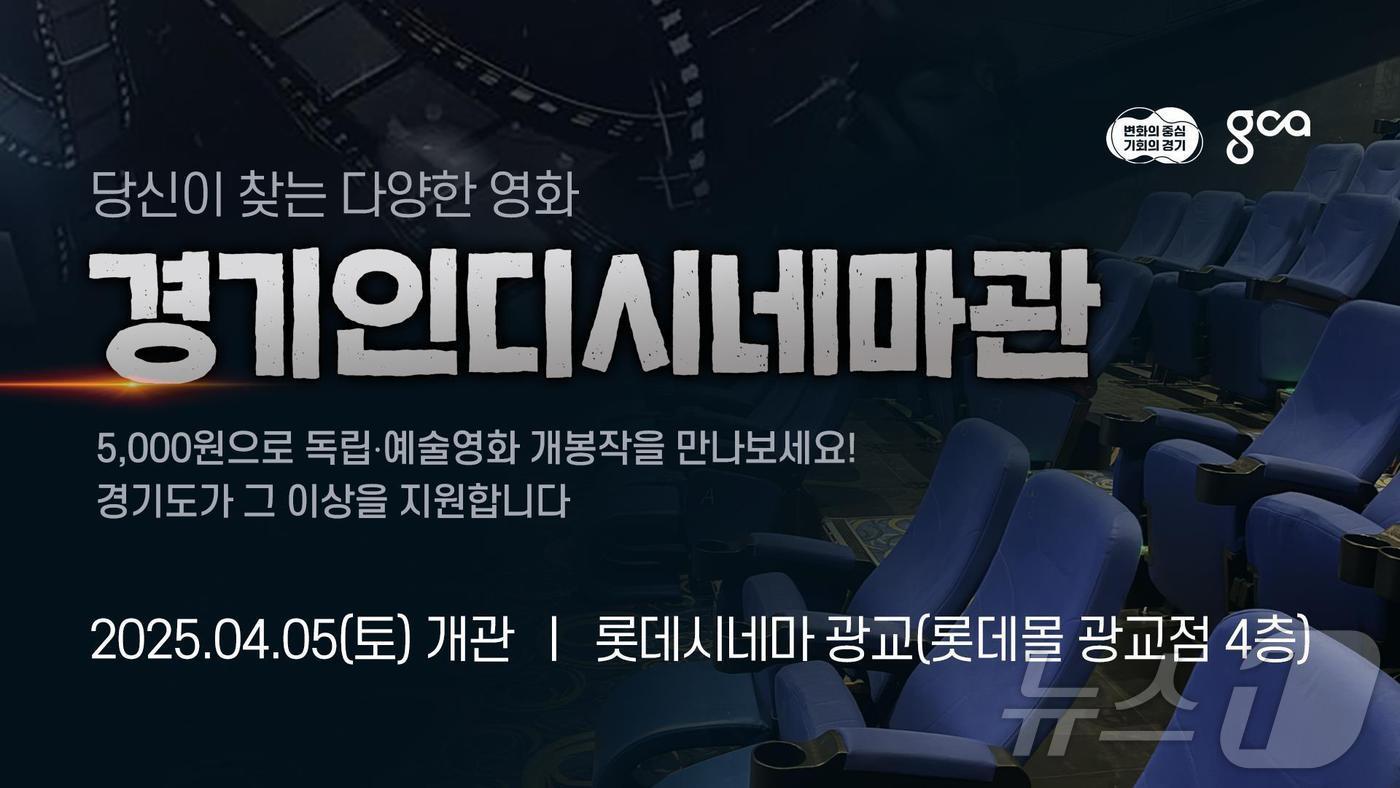 5일 롯데시네마 광교 1관에 개관4월 한 달간 '장손' 등 지난해 화제작 10편 특별상영경기인디시네마관 개관 홍보 이미지.(경기도 제공)최대호 기자 고양 문봉동 도로서 승합차 폭발 사고…운전자 화상경기도, 화성 봉담·구리 토평에 '범죄 안심 디자인' 입힌다