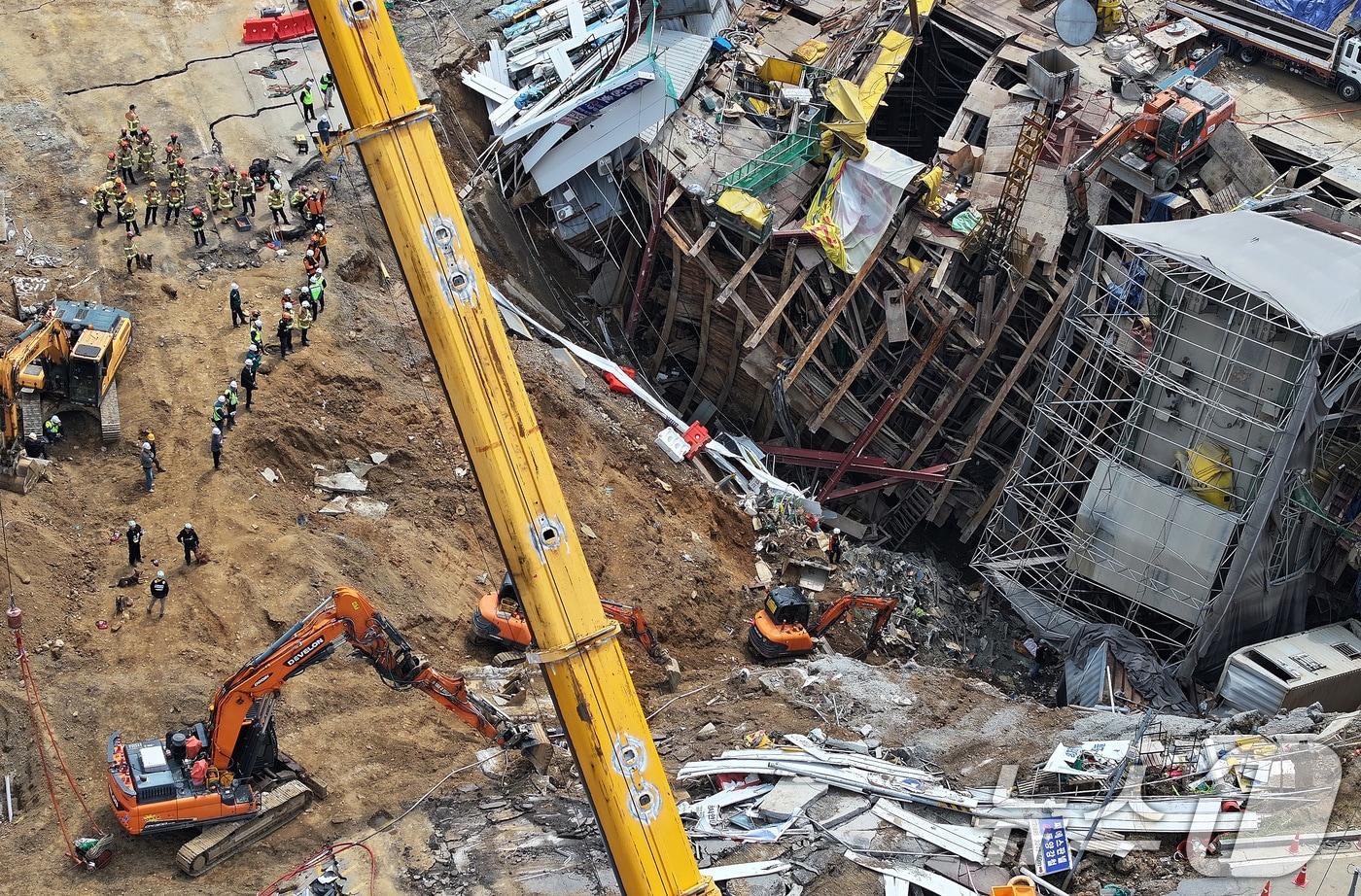16일 경기 광명시 일직동 신안산선 복선전철 5-2공구 붕괴 현장에서 소방관 등 관계자들이 실종자 수색 작업을 이어가고 있다. 2025.4.16/뉴스1 ⓒ News1 이동해 기자김기현 기자 "빚 때문에" 대낮 부천 금은방 강도살인…40대 신상공개 검토(종합)"청와대 폭파, 김현지 위해 가할 것" 협박…'좀비 PC' 동원 정황