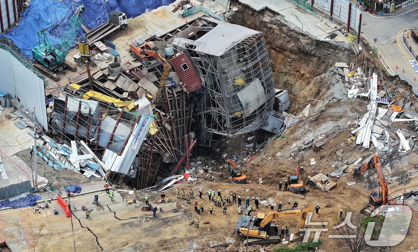 16일 경기 광명시 일직동 신안산선 복선전철 5-2공구 붕괴 현장에서 소방관 등 관계자들이 실종자 수색 작업을 이어가고 있다. 2025.4.16/뉴스1 ⓒ News1 이동해 기자김기현 기자 수원시, 노후 소규모 공동주택 주거환경 개선 지원…최대 5천만원수원 'R&D사이언스파크 조성 사업' 본궤도…도시개발구역 지정