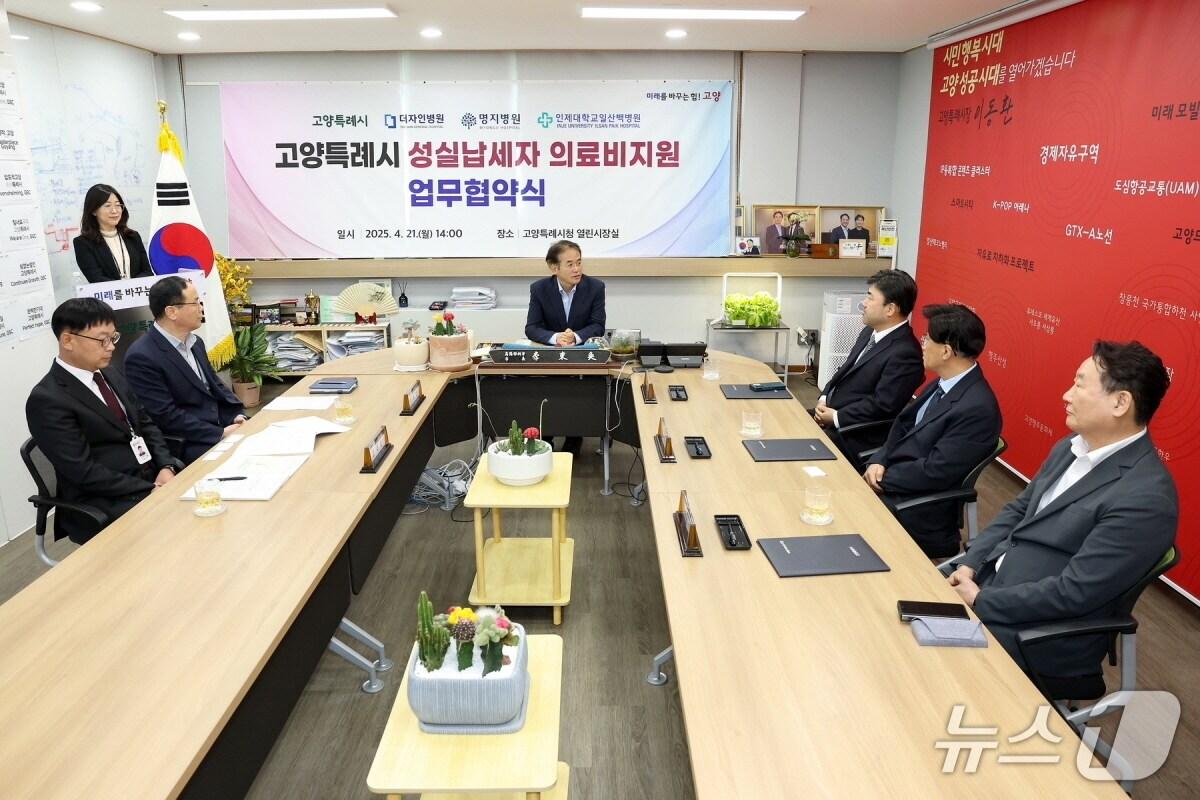 5년간 매년 5건 이상 기한 내 납부 시민 대상 선정지난 21일 고양시청 열린시장실에서 이동환 시장이 관내 의료기관 관계자들과 '성실납세자 의료비 지원 업무협약'을 맺은 후 환담을 나누고 있다. (고양시 제공, 재판매 및 DB금지)관련 키워드고양성실납세자건강검진비진료비일산백병원명지병원더자인병원일산복음병원박대준 기자 “1기 신도시 재정비 빨라진다”…'노후계획도시법' 국회 통과파주시, 발달재활·언어발달지원 서비스 바우처 지원금 인상관련 기사경기도, 성실납세자 지원 병원 확대…종합검진비 최대 30% 할인
