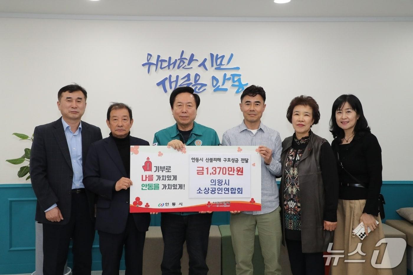 경기 의왕시소상공인연합회가 경북 안동시에 대형 산불 피해 회복을 위한 성금 1370만 원을 전달하고 기념촬영을 하고 있다. (의왕시 제공. 재판매 및 DB 금지) 2025.4.22/뉴스1 관련 키워드대형산불김기현 기자 "고양이가 가스레인지 건드려 불"…경기 '반려동물 화재' 연 130여건수원시, 노후 소규모 공동주택 주거환경 개선 지원…최대 5천만원관련 기사'2조 피해' 의성 산불 실화자 집행유예…산림당국 손배 청구할까26명 숨졌는데…'경북 대형 산불' 낸 성묘객·농민 1심 집유, 왜?(종합)26명 숨졌는데…'경북 대형 산불' 낸 성묘객·농민 1심 집유, 왜?여야, 2차 특검법 대치 속 11개 민생법안 처리…보이스피싱 방지법 등산림청 '산림·임업 전망' 행사 개최… 재난대응·목재주권 등 논의