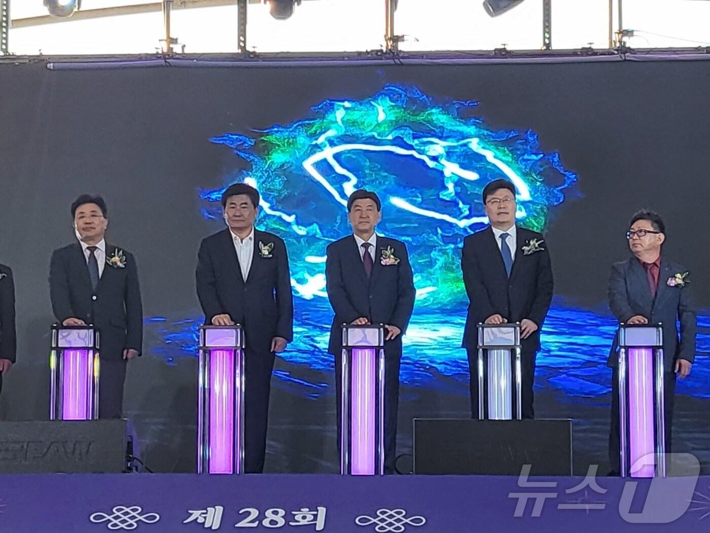경기 광주시의 대표 문화축제인 ‘제28회 광주왕실도자페스티벌’이 25일 곤지암도자공원에서 개막됐다. ‘전통과 미래의 동행’을 주제로 한 개막 퍼포먼스에서는 어린이, 도예인, 외국인, 내빈들이 광주왕실도자 달항아리를 들고 입장하며 도자의 정신을 상징적으로 표현했다. ⓒ News1 김평석 기자