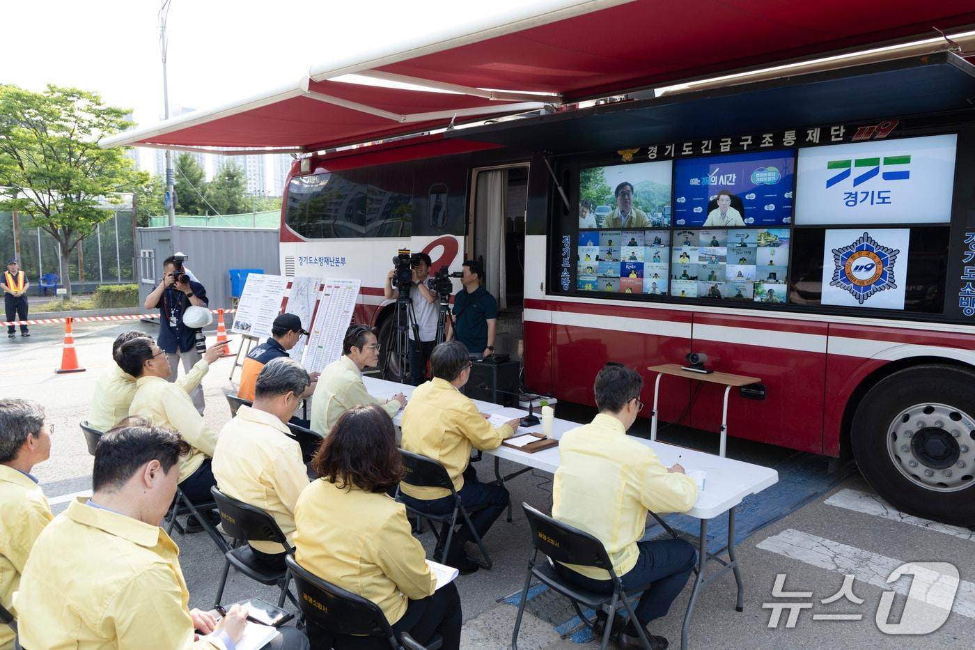 19일 오전 김동연 경기도지사가 광명 신안산선 복구 현장에서 신안산선 복구 현장점검 및 풍수해 대비태세 시군 영상회의를 하고 있다.(경기도 제공, 재판매 및 DB 금지)