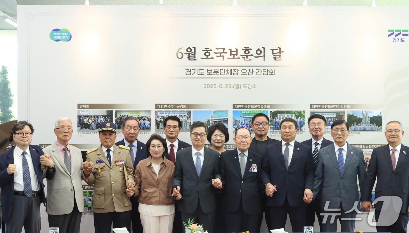 23일 오후 도담소에서 열린 경기도 보훈단체장 오찬 간담회에서 김동연 경기도지사와 도내 13개 보훈단체 경기도지부장 등이 기념촬영을 하고 있다.(경기도 제공, 재판매 및 DB 금지)